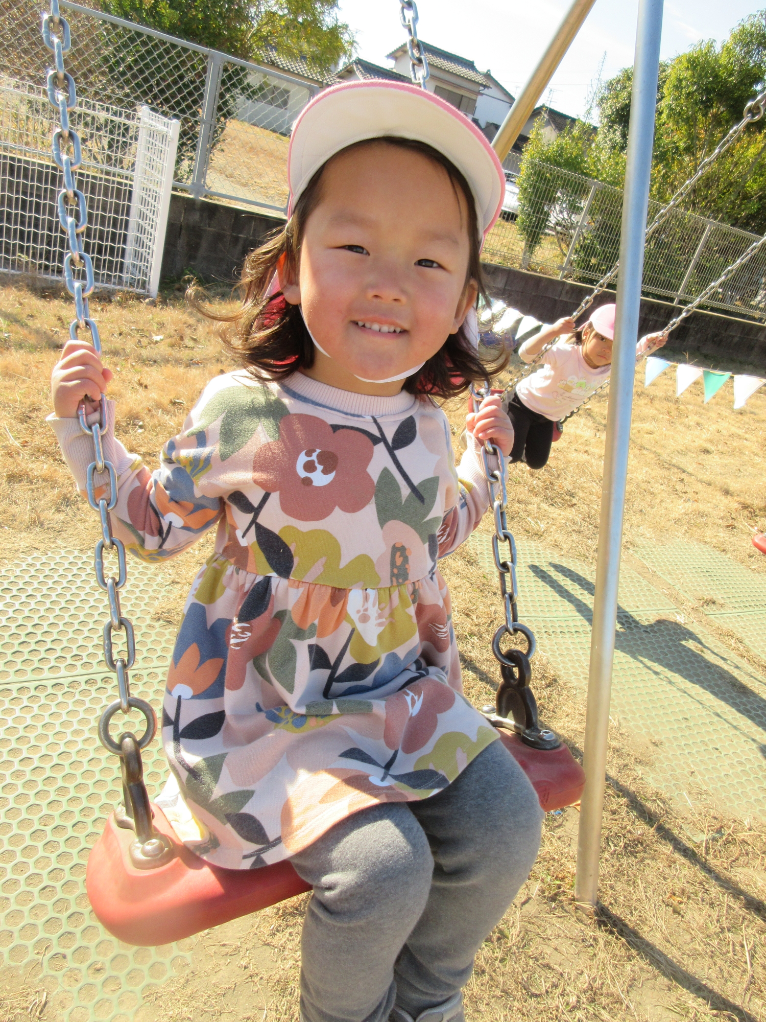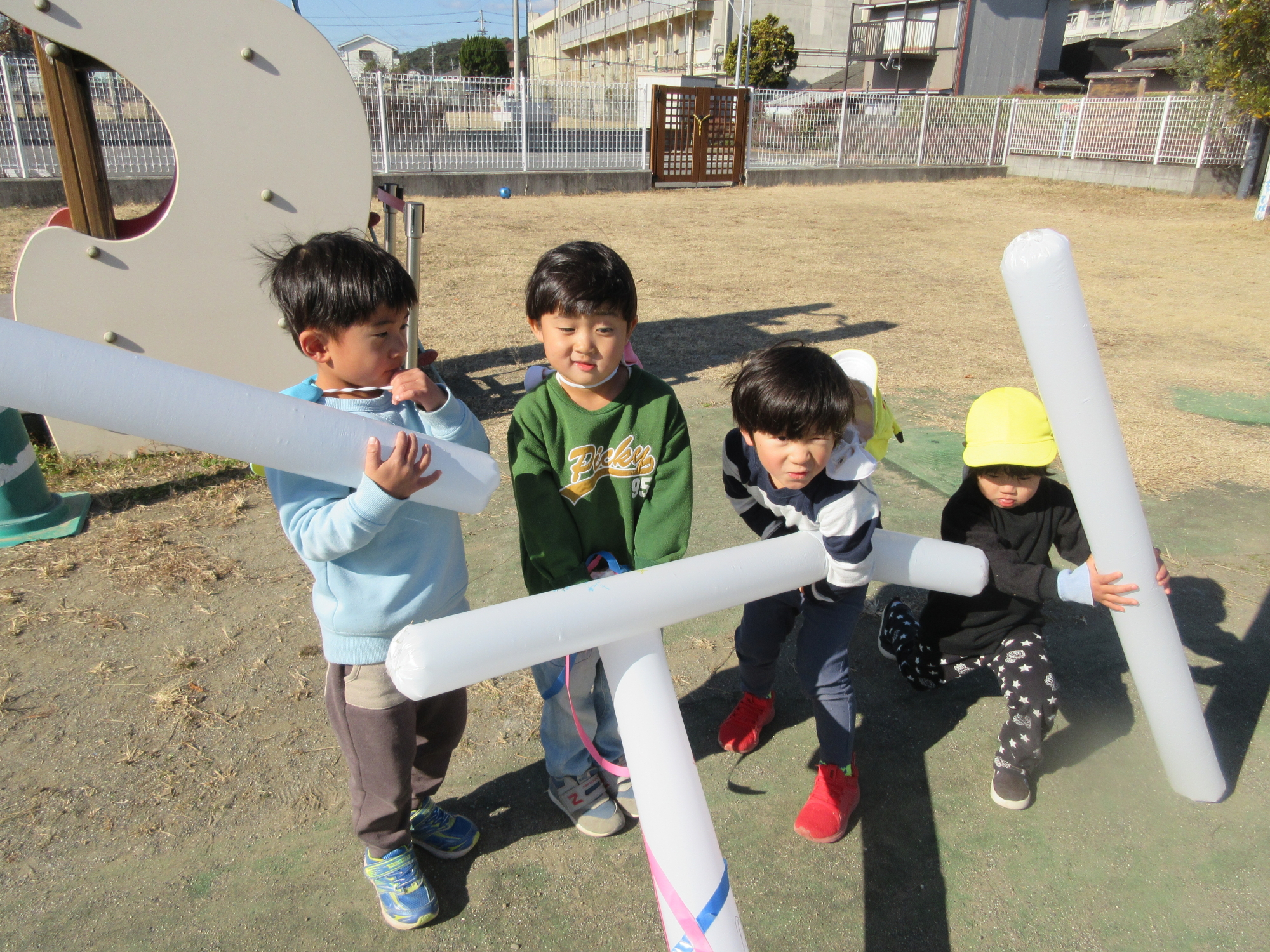 寒さに負けず、お庭で元気に遊んでいます!