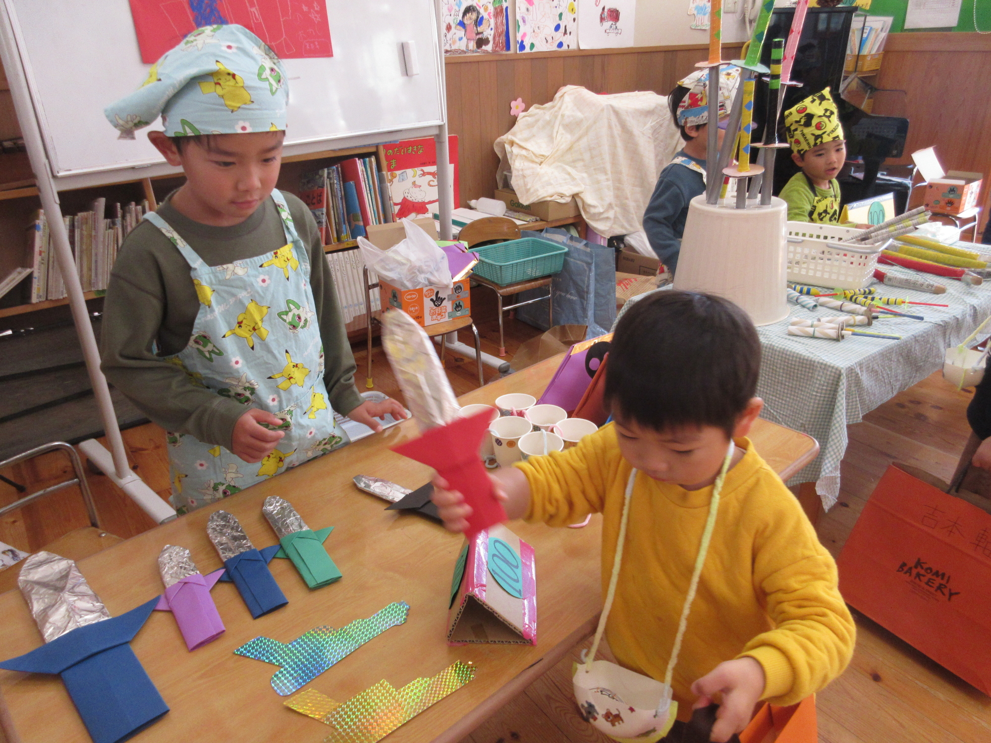 お店屋さんごっこ当日は、店員になりきり「いらっしゃいませ~!」や「ありがとうございました!」と元気な声が響いていました(^^)