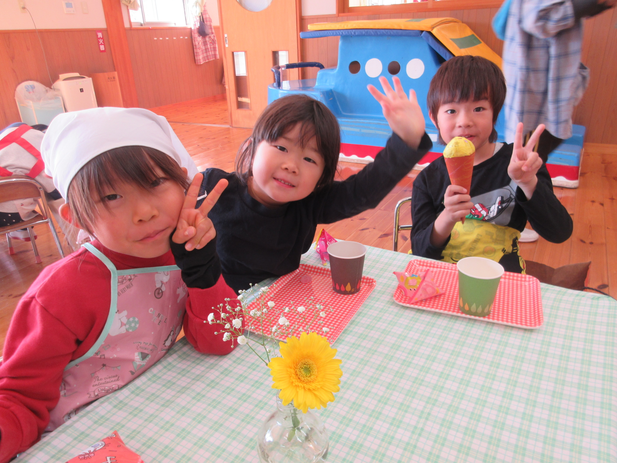 さくら組(2歳児)~みどり組(5歳児)の子どもたちが順番にお茶と和菓子を味わっていましたよ(^^♪ 1歳の男の子とお母さんも来てくれていました♪