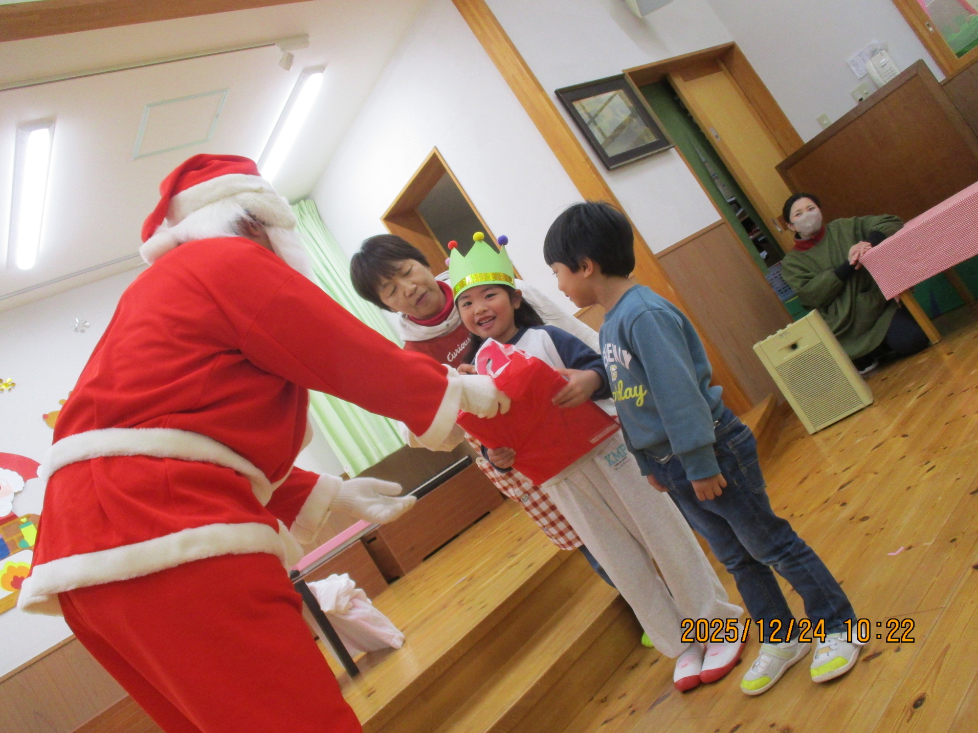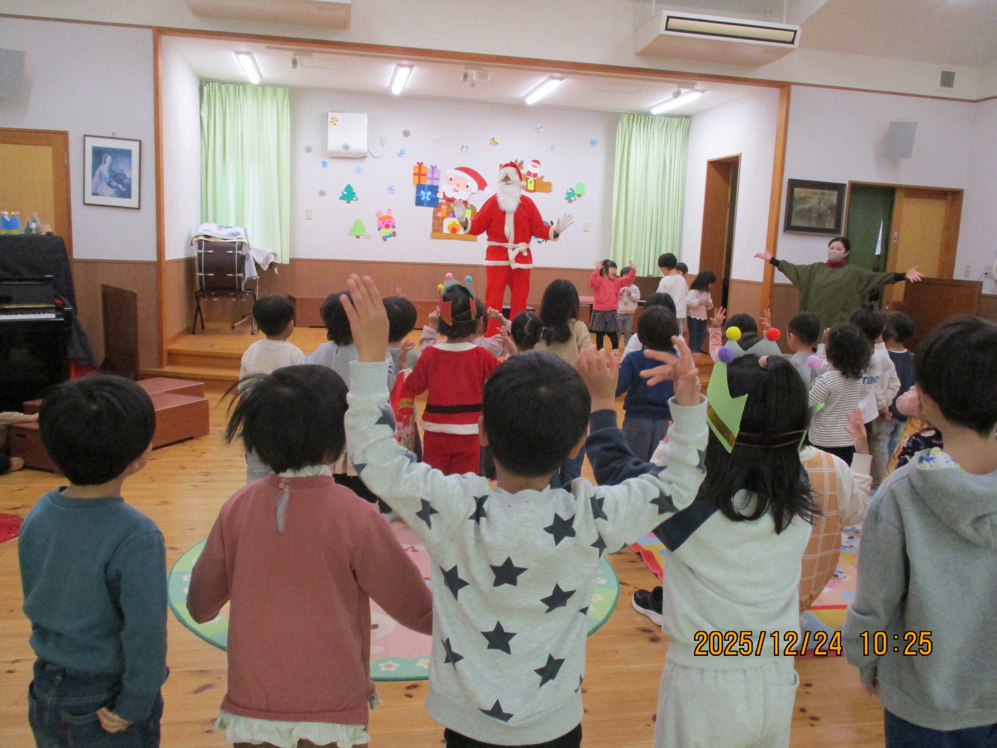 サンタさんの姿が見えると、「わぁ~!サンタさんや✨」と嬉しそうな子どもたち♪