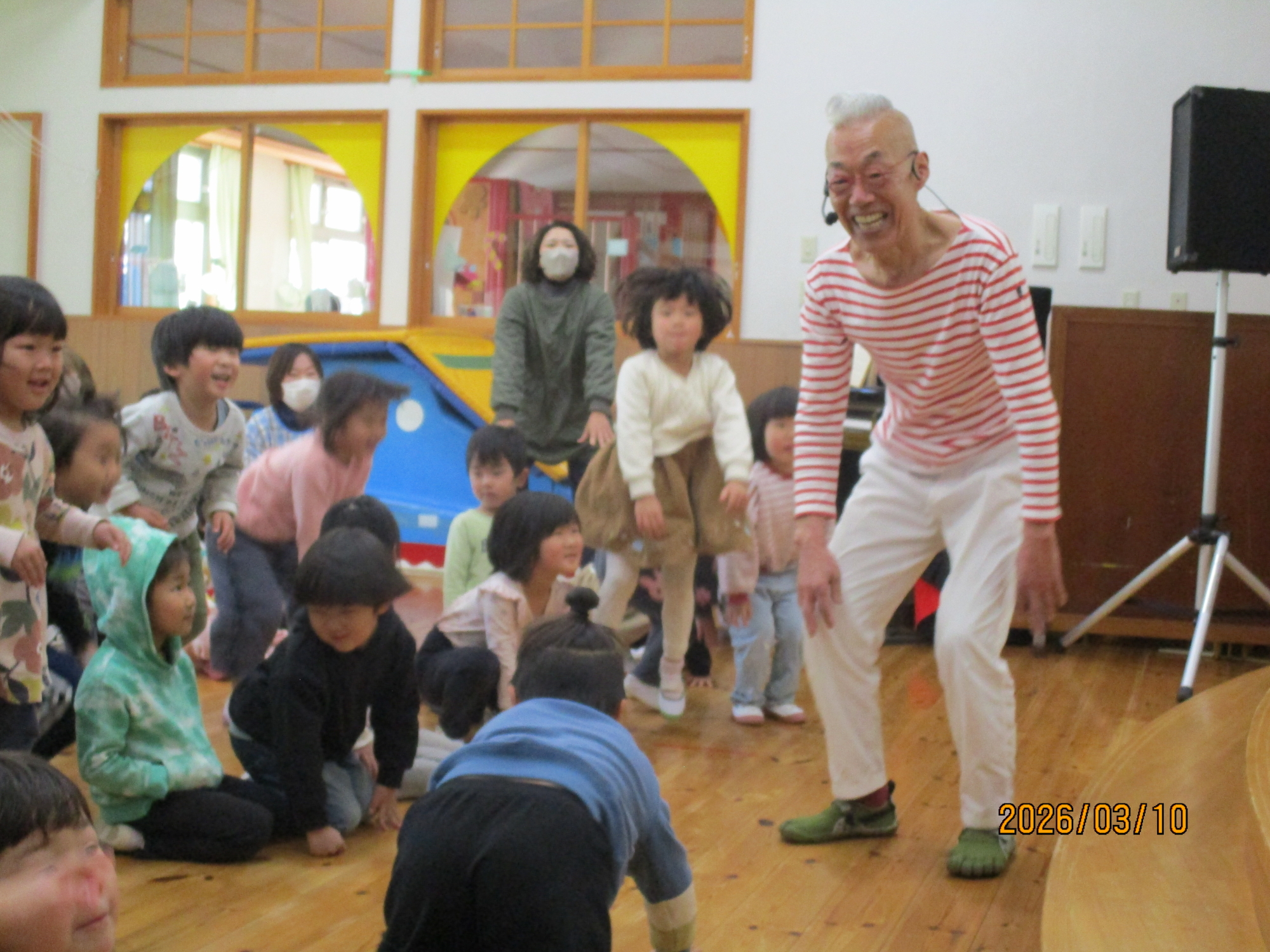 踊りを踊ってくれたり、子ども達や職員にも泥を塗ってくれました。